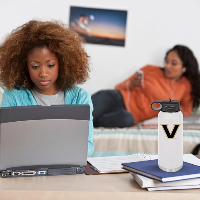 Vanderbilt University 32oz Stainless Steel Double Walled White Beverage Bottle with Flip Straw Spout - College Gear for Playoff Season – For Office, Home or Auto – Show your Commodores Pride