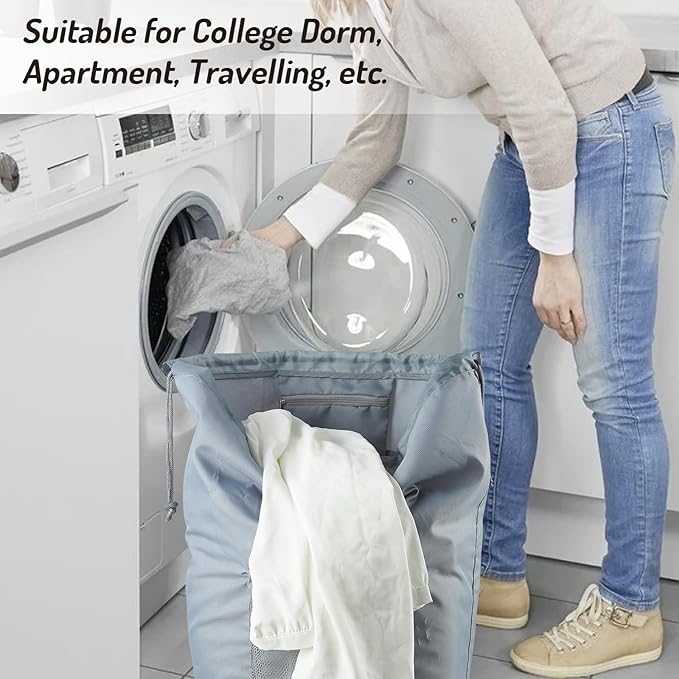 - USE AS HANGING HAMPER AND MULTIOCCASION: This laundry backpack bag has reinforced hanging loop inside the handle. You can use it as a hamper and hang it to door or wall. The travel laundry bag is easy to fold and store in the suitcase, suitable for dorm, home, laundry shop, hiking, camping, or picnics