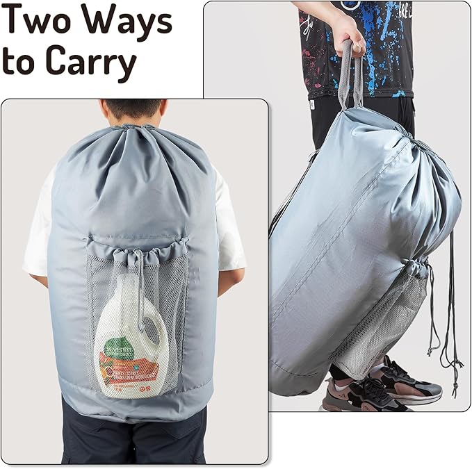 Backpack Laundry Bag, Large Laundry Backpack with Detergent Holder and Adjustable Shoulder Straps for College Travel Dorm Room (Gray)