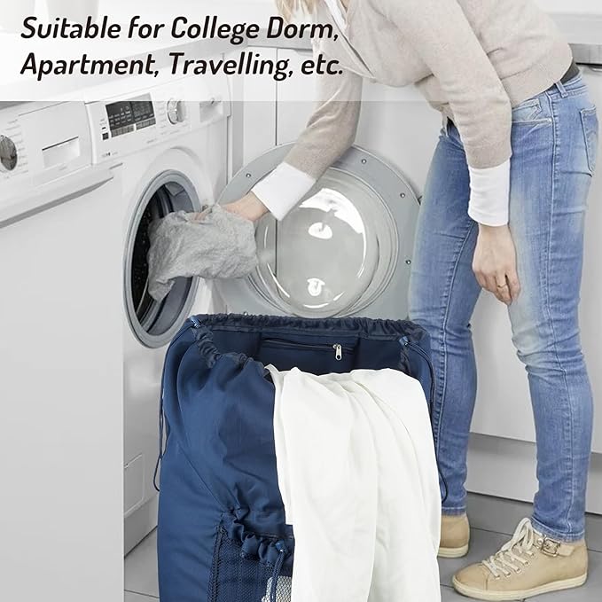 - USE AS HANGING HAMPER AND MULTIOCCASION: This laundry backpack bag has reinforced hanging loop inside the handle. You can use it as a hamper and hang it to door or wall. The travel laundry bag is easy to fold and store in the suitcase, suitable for dorm, home, laundry shop, hiking, camping, or picnics