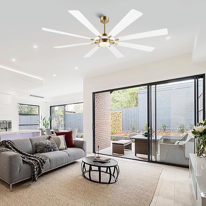 - Modern Industrial Design : This 80 inch ceiling fans with lights, it with 8 pieces of wood blades, gold with white wood makes the ceiling fan delicate and be of great taste. Its can go with any scene, from home to industry