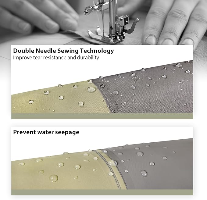 - Why won’t it leak water? - The upgraded material has passed a strict water pressure test and a surface water repellent test, and its double needle and heat sealing technology can keep your furniture dry on rainy days and extend its lifespan. Place some items under the patio table furniture covers to raise them and keep water from pooling