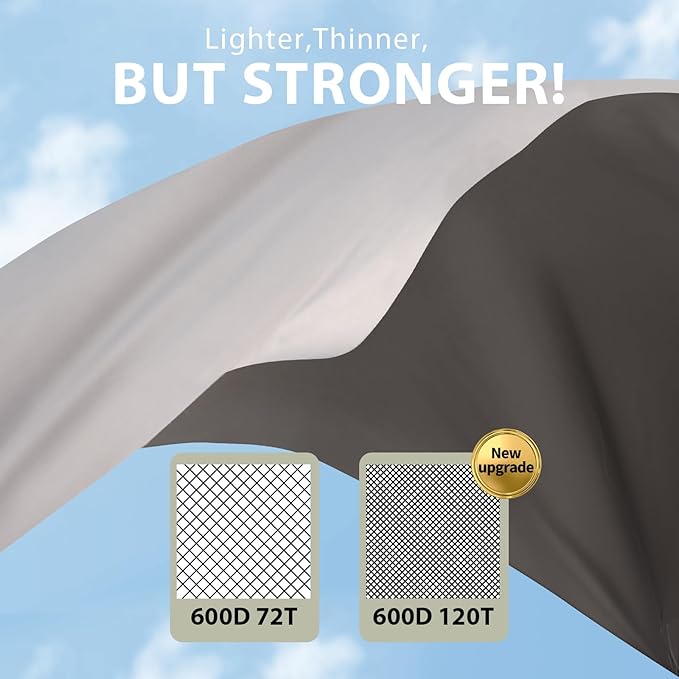 - Why won't it tear? - 10 years of sales experience and user voices tell us that customers need high-density, waterproof, and tear-resistant patio table covers to meet your needs. So we have carefully chosen 600D PU upgrade material that has passed a vehicle pulling test, which can save your outdoor tables and chairs from harsh weather