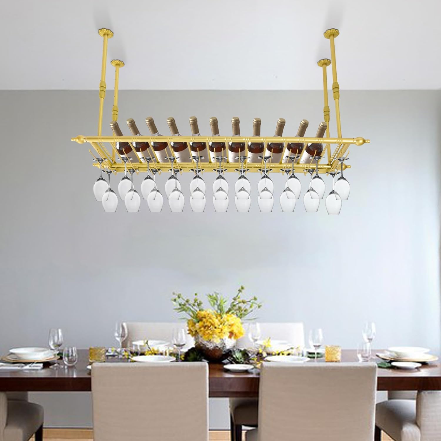 Hanging Wine Rack 47" Wall Mounted Wine Glass Rack Ceiling Adjustable Hanging Bar Glass Holder Shelves for Kitchen Bar Restaurants Industrial Iron Storage Shelf