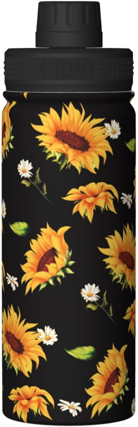 Cerburny Water Bottle Sunflower 18 oz Stainless Steel Insulated Bottles With Lid Wide Mouth Gym Sports Water Jug For Women Mom Mother