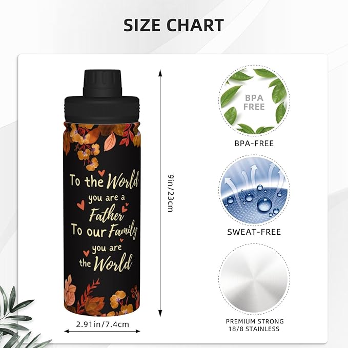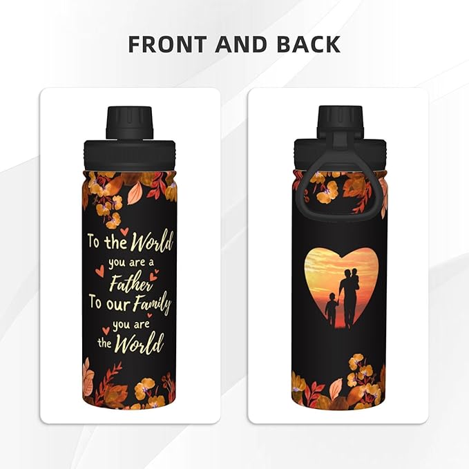 Cerburny Water Bottle Dad Father 18 oz Stainless Steel Insulated Bottles With Lid Wide Mouth Gym Sport Water Jug For Men Adult