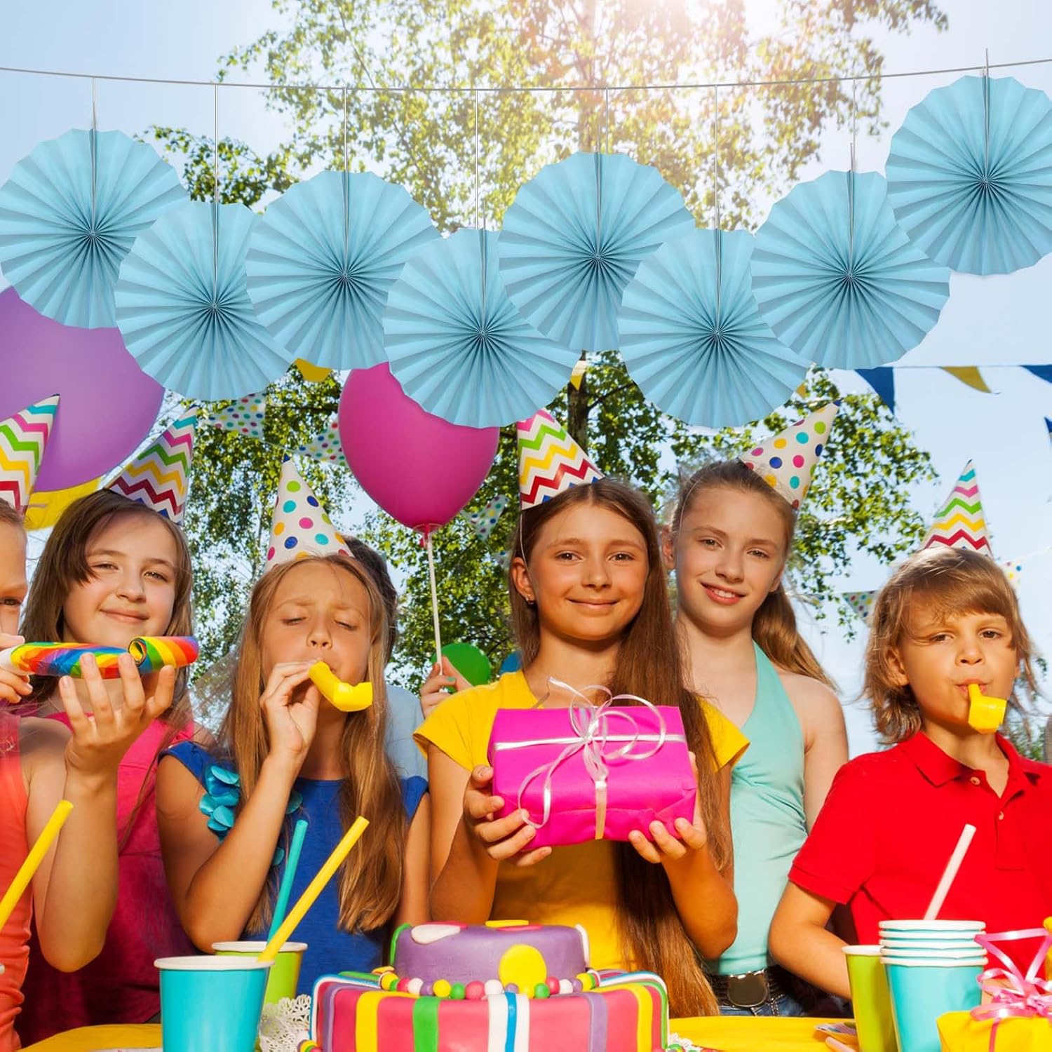 Blue Graduation Party Decor,Baby Blue Party Decorations,Christmas Baby Shower Decorations,Under The Sea Decorations,Blue Bachelorette Party 12in Hanging Paper Fans 30 Color DIY Set (Light Blue)