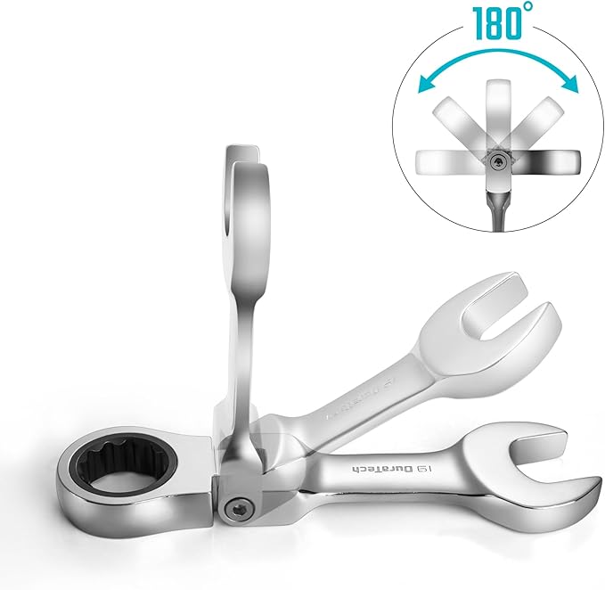 - 180-degree rotating flexible heads allow you to apply leverage at any desired angle and get around obstructions. 72-tooth ratchet gear needs a minimum of 5 degree swing arc that is perfect for restricted, hard to reach work spaces. Great for tight spaces design