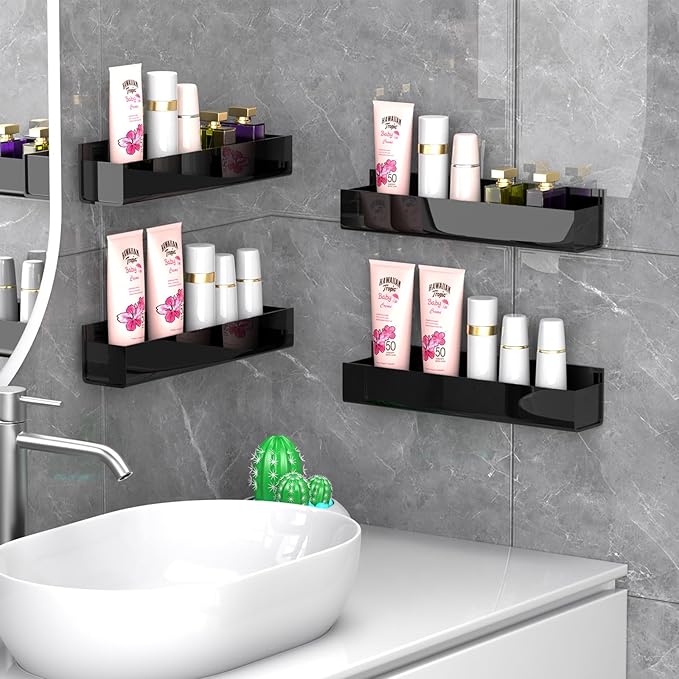 PMMASTO Adhesive Acrylic Spice Rack Organizer for Wall with Nano Double Sided Tape, Spice Shelf Organization for Kitchen Cabinet Door/Pantry Door, Wall Mount Seasoning Rack (Black - 4 Pack)