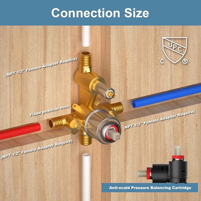 - Temperature Constancy: Pressure balancing shower valve maintains a stable water pressure and temperature, prevents sudden temperature changes caused by fluctuations in water pressure, like when flushing a toilet. Ensures a consistent and comfortable showering experience by automatically adjusting the flow of hot and cold water.