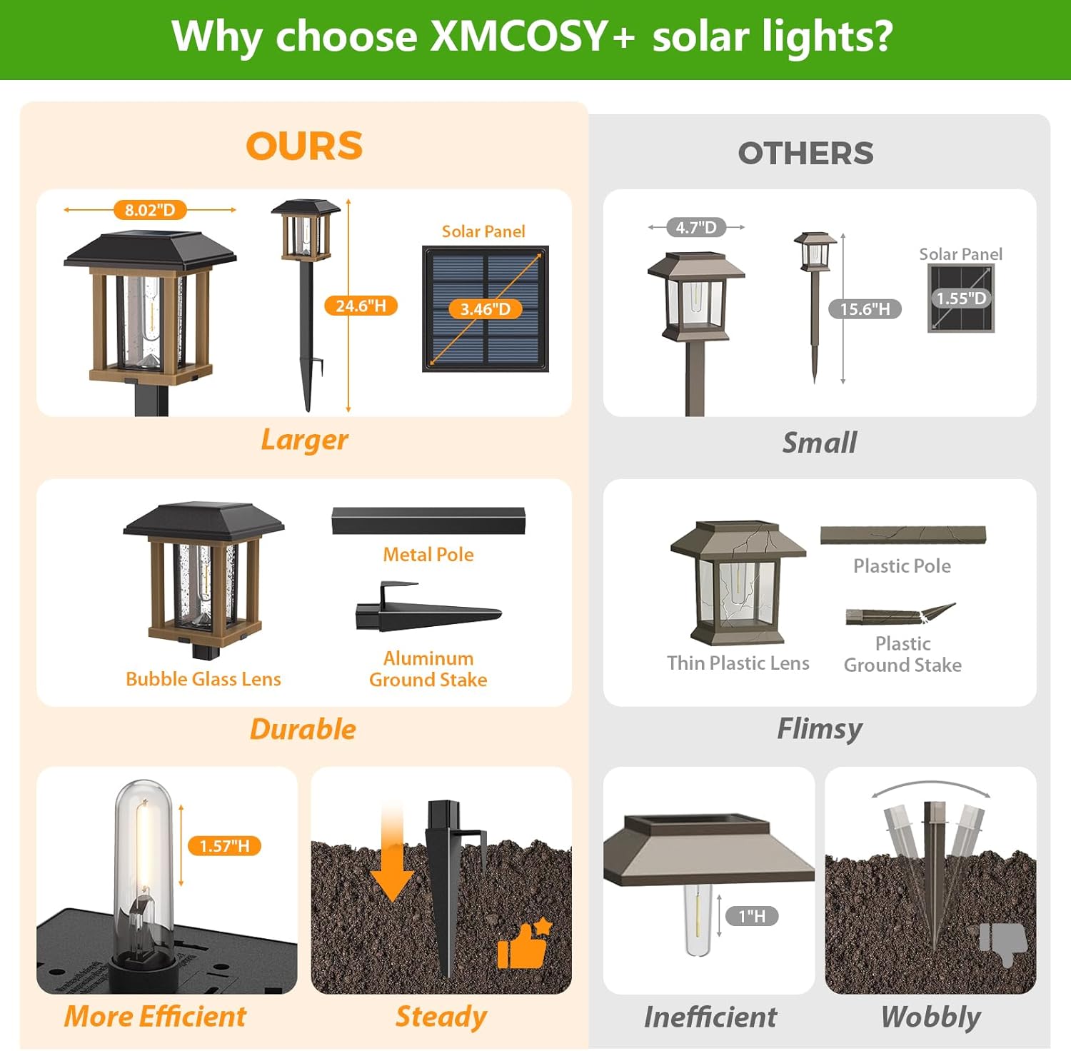 XMCOSY+ Solar Lights Outdoor Waterproof IP65, 25 LM Garden Light for Yard Pathway, Dual-Tone LED Lights with Seed Glass Metal, Solar Powered Landscape Walkway Pathway Decor Lighting (Warm White)
