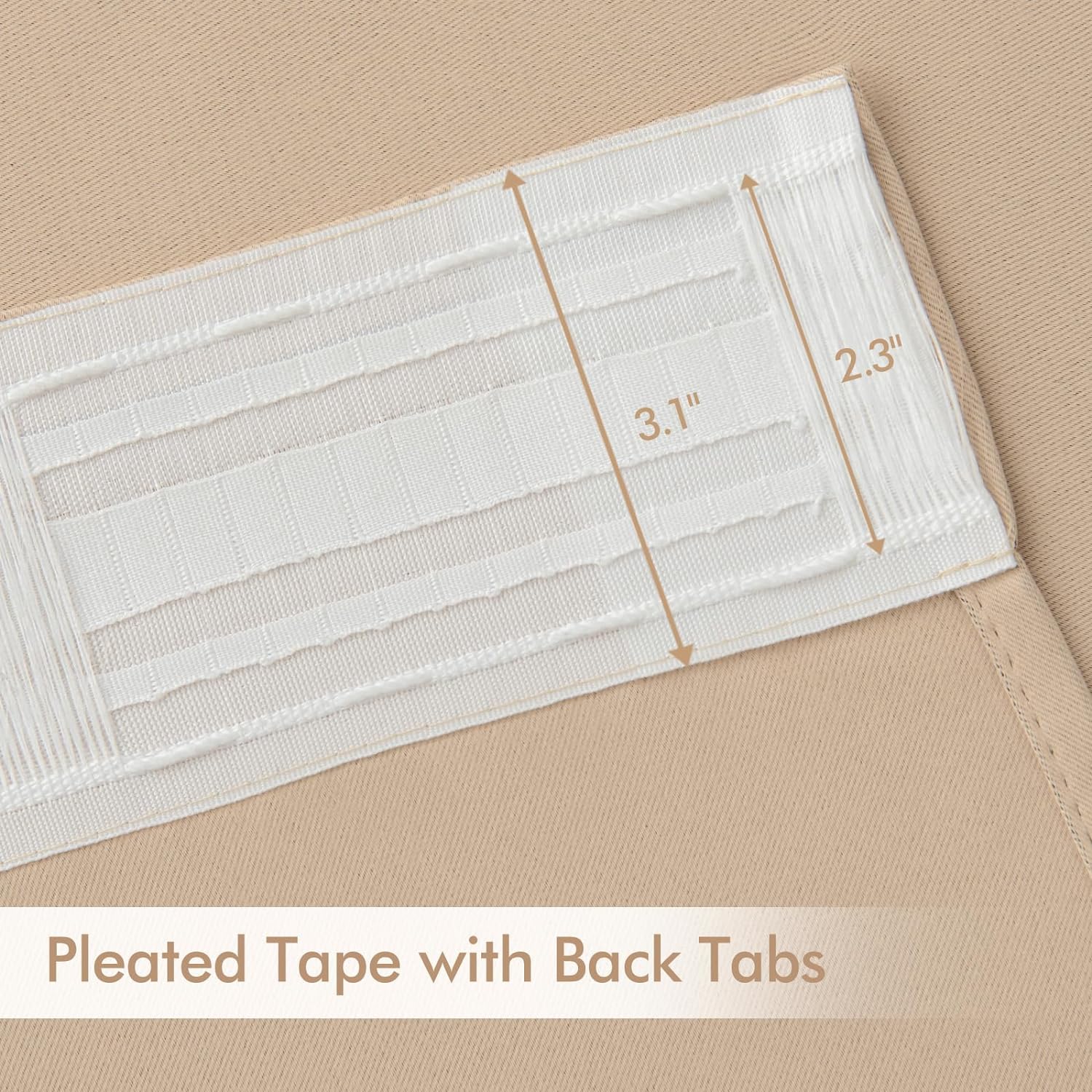 MIULEE Back Tab Beige Curtains 90 Inch Long 2 Panels Set for Living Room Bedroom Privacy, Cream Rod Pocket/Pinch Pleated Light Blocking Thermal Insulated Room Darkening Blackout Curtains, 52 x 90 Inch
