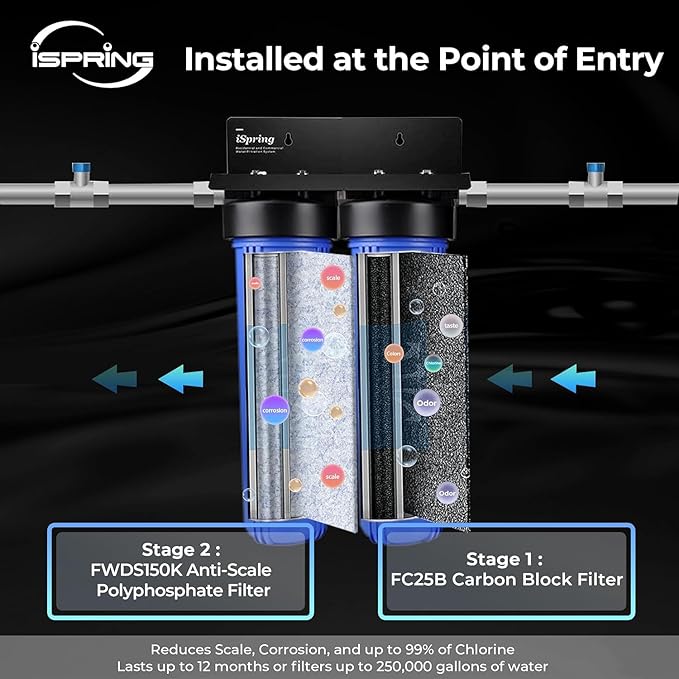 - Important Note: Unlike reverse osmosis (RO) systems, our whole house water filtration system preserves the healthy minerals in your water by not reducing Total Dissolved Solids (TDS). If you're specifically interested in a filter that removes TDS we recommend exploring our iSpring Reverse Osmosis (RO) systems. Additionally, please be aware that while the polyphosphate filter prevents scale formation, it does not remove calcium and magnesium from water; its primary function is to prevent the molecules from creating scale in your plumbing system.