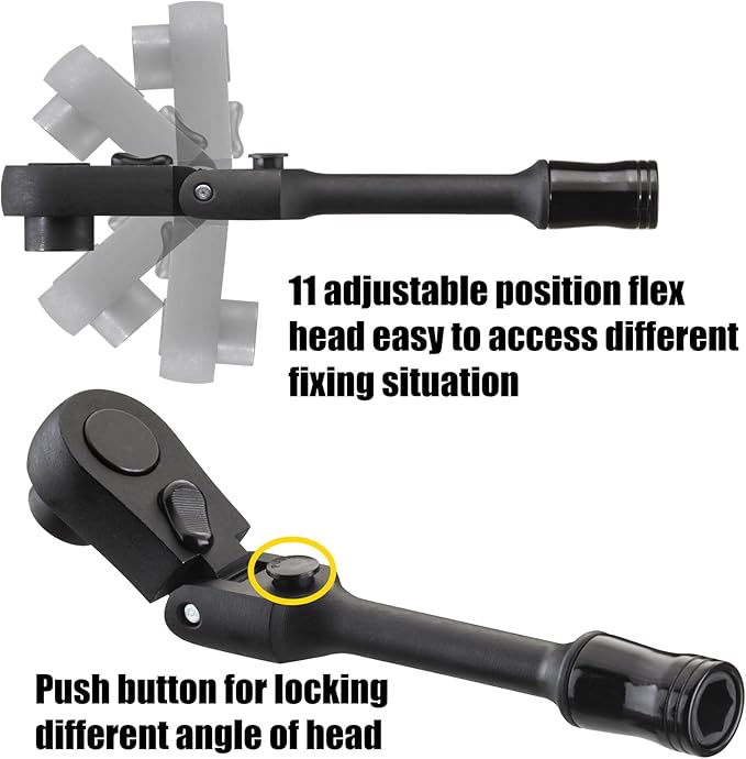 - 【FLEX LOCKING HEAD DESIGN】: Experience unparalleled access with our 11-position locking Flex-Head design. This innovative feature allows for maximum flexibility, adapting to various angles and positions to tackle tasks in the most confined spaces