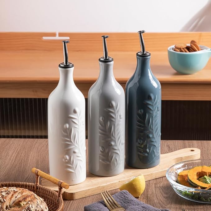 - Durable and Precise Pouring Control - The olive oil bottle fired at high temperatures, to form a smooth glazed surface, strength and durability. The carefully designed spout that allows for easy pouring without any messy drips or spills.