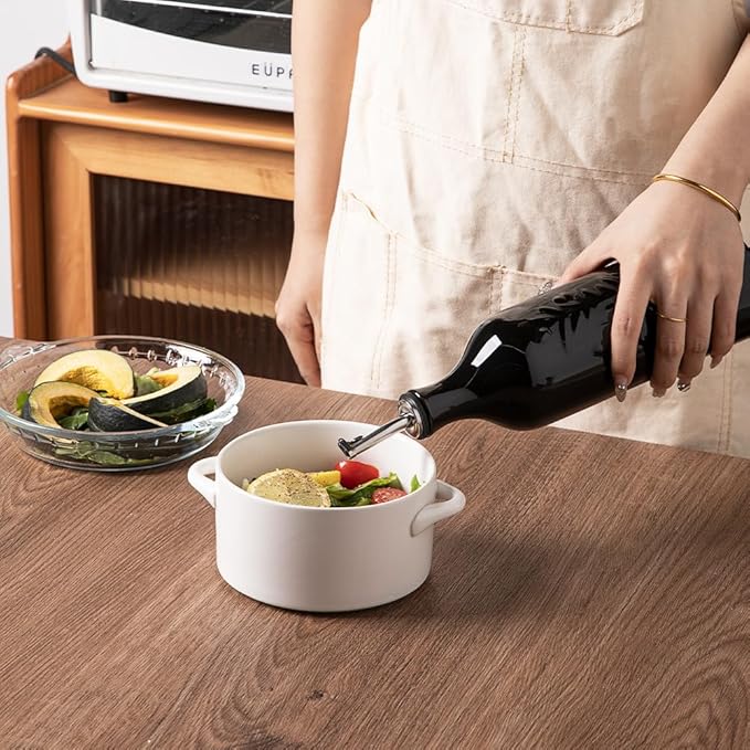 - Durable and Precise Pouring Control - The olive oil bottle fired at high temperatures, to form a smooth glazed surface, strength and durability. The carefully designed spout that allows for easy pouring without any messy drips or spills.