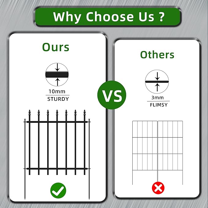 - STURDY STRUCTURE: This Forehogar garden border fence is welded by 0.4x0.4inch high quality steel tubes, they are very sturdy. The stakes are 8mm diameter, and they can be extended pretty far into the ground which link fence sections closely and stable standing. It works perfect as a garden fence border.