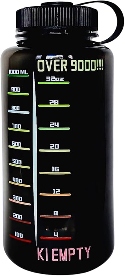Water Bottle, Anime Inspired, It's over 9000, BPA-Free Large Plastic Water Jug With Screw Top Lid, Wide Mouth, Hydration For Outdoor Sports, Gym, Yoga. Holds 32 Ounces, Travel Container