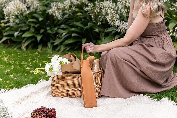 - Our beautifully crafted vegan Leather Wine Bottle Carriers are lightweight, durable and compact. They come with our signature gold corkscrew opener.