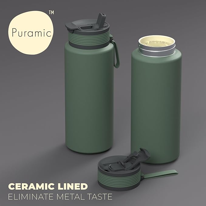 - Innovative Puramic Coating: Experience pure taste with our bottle's interior ceramic coating, eliminating any unwanted metallic flavor. This advanced feature ensures that every sip is as crisp and delicious as the first, making it the perfect companion for both hydration and flavor preservation.