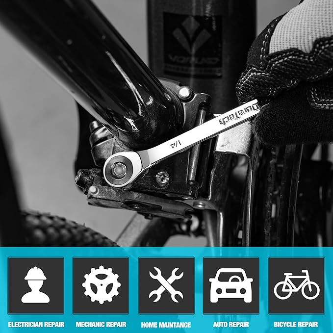 - Stamped Size: At about 4.9 inches long, DURATECH 1/4 inch ratchet combination wrench exceeds ANSI standards, and the stamped size can be permanently retained. This feature ensures you can quickly identify and select the right wrench you need from your toolbox with ease