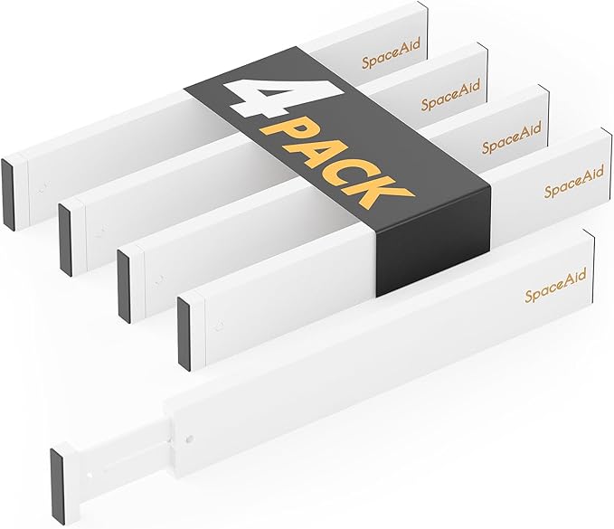 SpaceAid 4 Pack Bamboo Drawer Dividers with Labels, Kitchen Adjustable Drawer Organizers, Expandable Organization for Home Clothes Dressers (17-22 in, White)