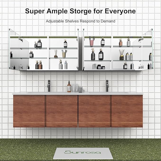 Sunrosa Aluminum Bathroom Medicine Cabinet with Mirror Door, 48" x 27.5", 2-Door Wall-Mounted & Recessed Bathroom Medicine Cabinet Organizer