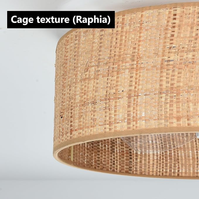 Boho Small Reversible DC Ceiling Fan with Light Fixture and Remote Control ,Flush Mount Drum Caged Enclosed Round Cage Low Profile Fandelier for Bedroom Indoor Kitchen Nursery Office Dining Room