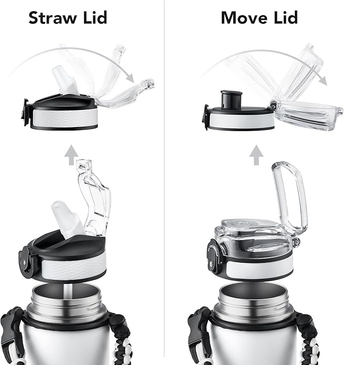 - Insulated water bottle 24 oz: 24 oz insulated water bottle has a matte finish and comes with 2 lids (Lid with Straw/No Straw) and a Paracord handle for easy portability; Its wide mouth makes it easy to fill, pour, and clean, and the leak-proof cap ensures worry transport.