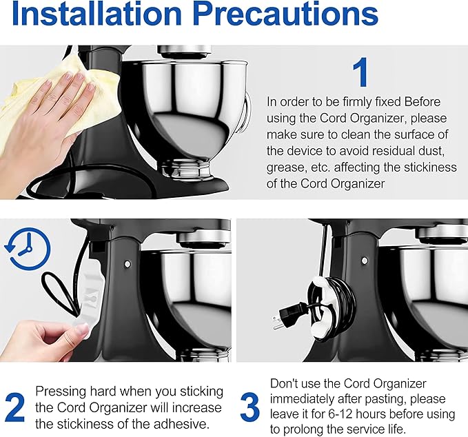 - EASY TO INSTALL: Sticky adhesive pad ensures quick install on your appliance. Wipe clean, remove any grease, dust or oil on appliance before applying our kitchen appliance cord winder, place 6hrs before using for better effect