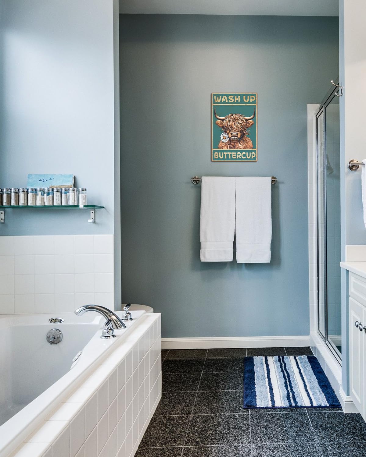 - Farmhouse Bathroom Wall Decor : The cow wall art is designed with funny bathroom highland cow elements, that can help you express your bold style and unique artsy taste to add more funny to your space