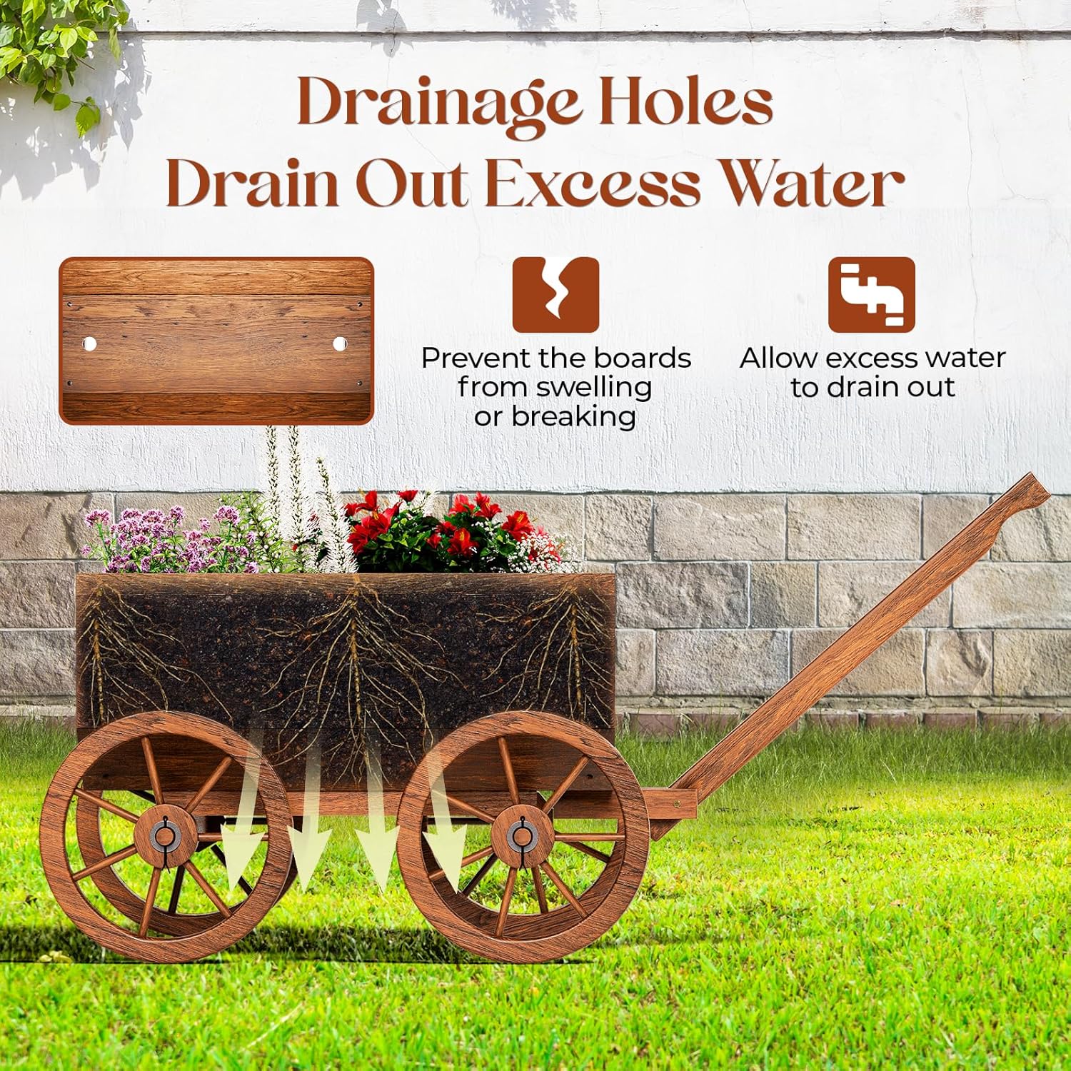 - 30% MORE CAPACITY THAN OTHERS: The planting space is larger: 27.56 "x 13.88" (instead of 24.40 "x 12" of other similar wagon planters) With this wider, longer, and deep wooden barrel planter you can grow more flowers or plants