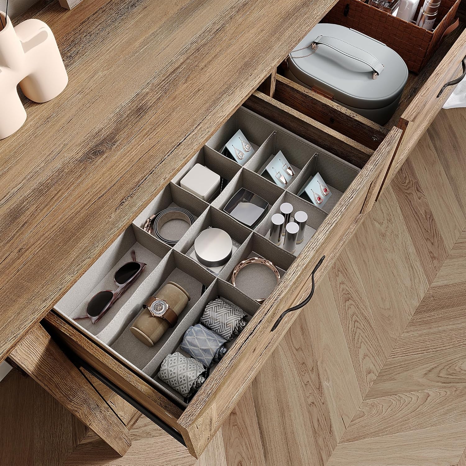 - 【Premium Material】:Made of P2 Grade Board, which is not only more cost-effective, but also environmentally sustainable. Our dresser features premium metal slides that glide smoothly and are built to last. The surface is coated with easy-to-clean and environmentally friendly paint.