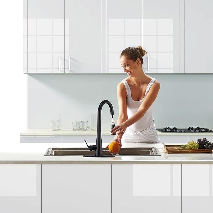 - Chic Matte Black Color: Embrace with our HGHGK faucet in a mesmerizing matte black color,that elevate your kitchen; Included soap dispenser enhances functionality and tidiness, making culinary tasks effortless and organized