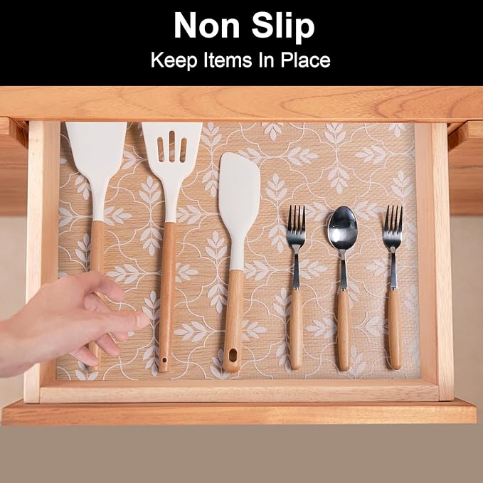 - EASY TO INSTALL AND CUT: Cabinet liner are easy to cut, you can easily cut them into the shape you want with scissors, then place the liners on a drawer or table and trim off the excess material. Our drawer liners are non-adhesive and easy to remove.