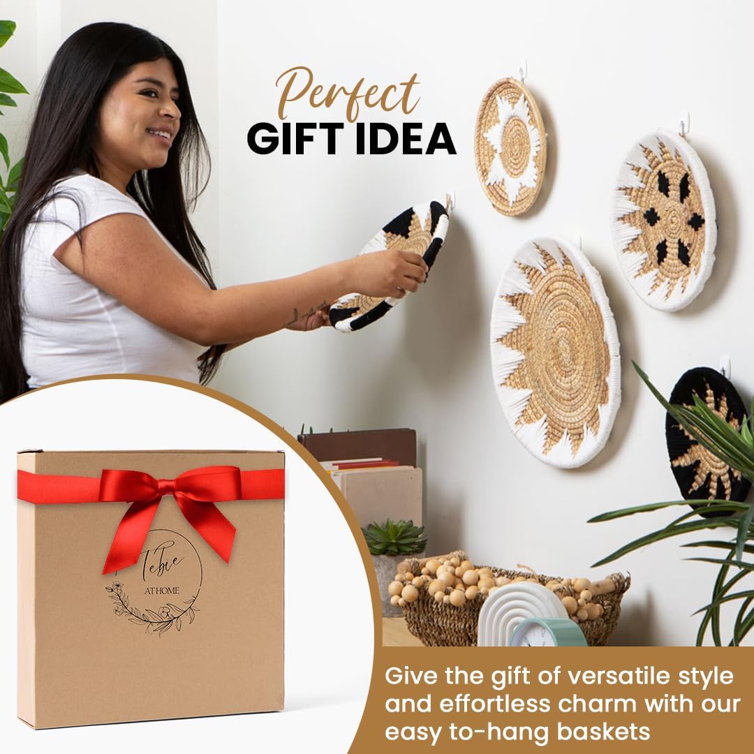 - ๐๐๐ซ๐๐๐๐ญ ๐๐ข๐๐ญ ๐๐๐๐: These woven wall art are handmade by skilled artisans and show both beauty and care. The rattan wall art make great gifts for housewarmings, birthdays, Motherโs Day, Thanksgiving, Christmas, and other special occasions.