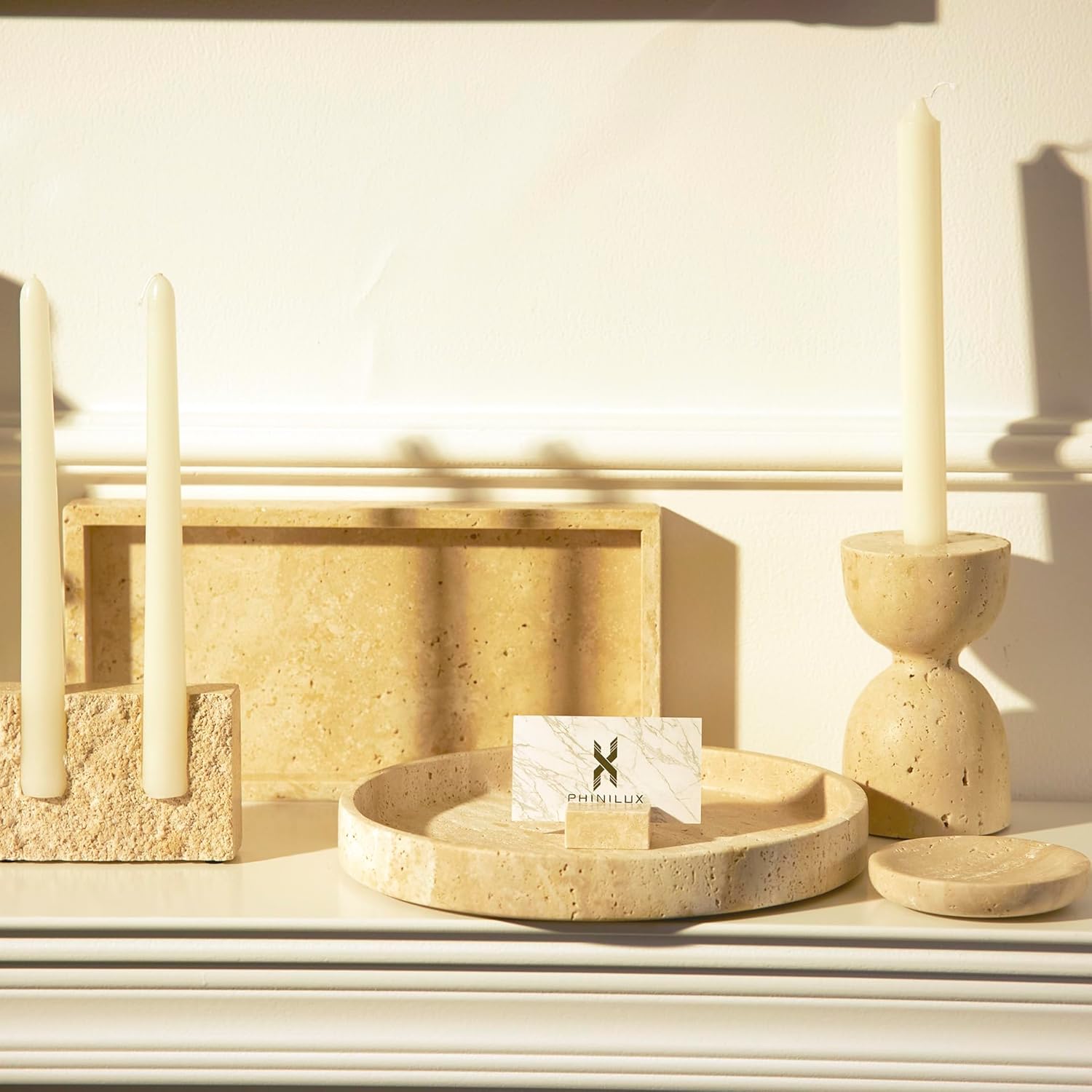 Luxury Turkish Travertine Coasters - Set of 4 - Square Marble Bar Coasters for Drinks, Coffee - Stone Holder for Home Décor, Housewarming Gifts (Beige Travertine)