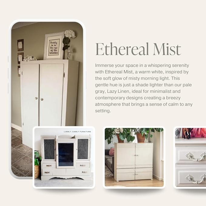 Country Chic All-in-One Chalk Paint for Furniture, Cabinets, Home Decor, Eco-Friendly, Matte Finish, Built-In Primer & Top Coat for Wood, Metal - Ethereal Mist (Light Grey) - Pint 16 oz (475 ml)