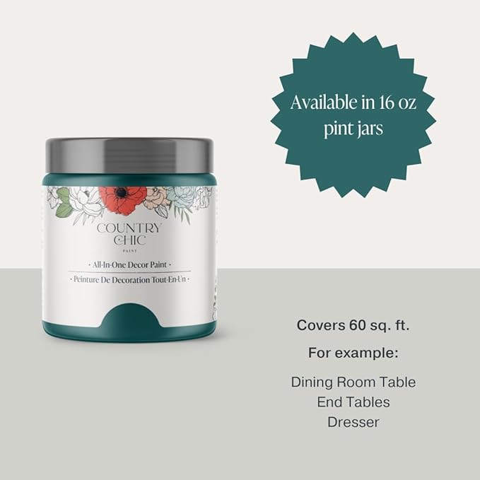 Country Chic All-in-One Chalk Paint for Furniture, Cabinets, Home Decor, Eco-Friendly, Matte Finish, Built-In Primer & Top Coat for Wood, Metal - Aurora (Teal Blue) - Pint 16 oz (475 ml)