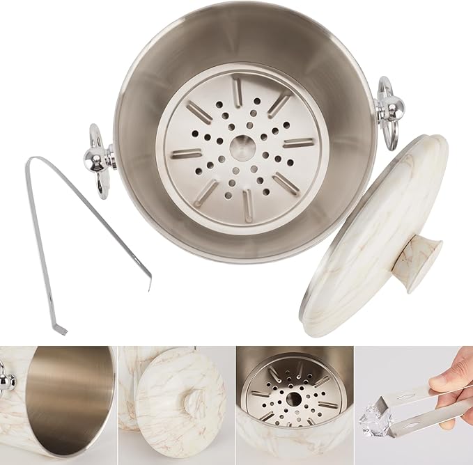 Ice Bucket with Lid, 3L Diamond Bottom Design Double Wall Stainless Steel Insulated Ice Bucket, Champagne Bucket, Wine Bucket for parties, cocktail bar, Marble
