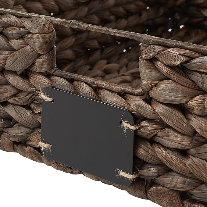 Casafield Set of 4 Water Hyacinth Pantry Baskets, 10" x 13" x 5", with Chalkboard Labels and Chalk Marker - Espresso, Woven Storage Bin Organizers for Kitchen Shelves