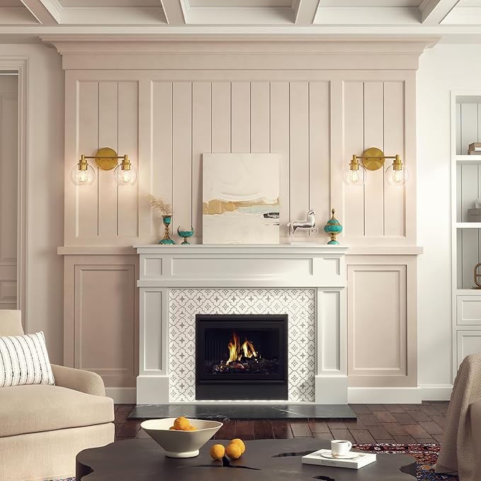 - Modern Vanity Light: Vonluce's 2-light bathroom vanity light blends clear glass shades with an antique brass finish, adding a timeless charm to any interior style, from chic modern to classic traditional
