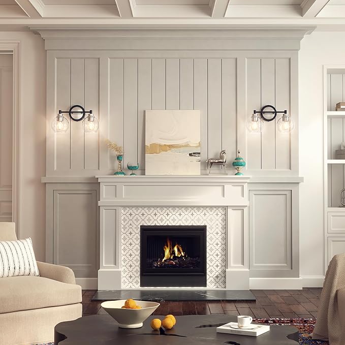- Modern Vanity Light: Vonluce's 2-light bathroom vanity light blends clear glass shades with matte black and brushed nickel finishes, adding a timeless charm to any interior style, from chic modern to classic traditional