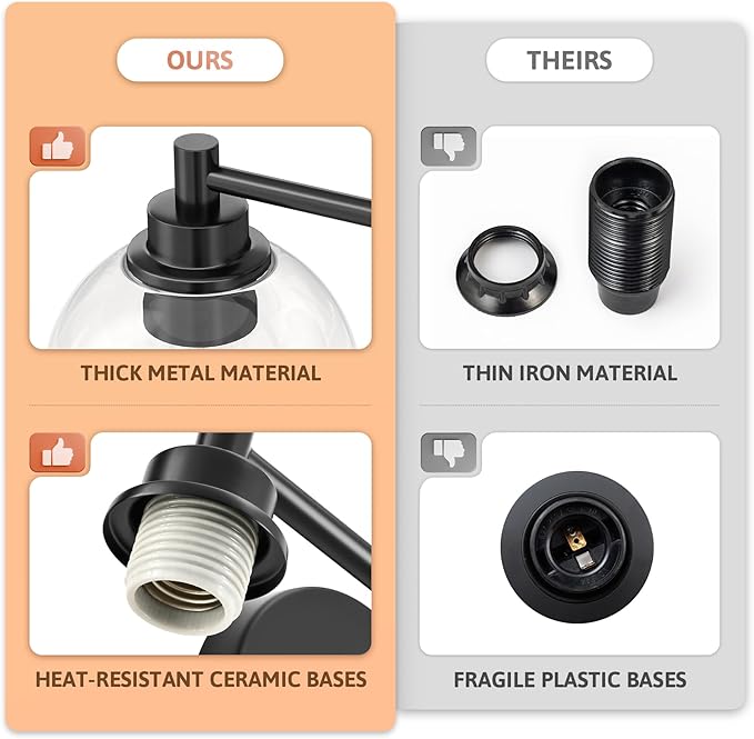 - Glow Anywhere: With its clear glass shades, our vanity light fixture emits warm and bright illumination, creating an inviting atmosphere in bedrooms, living rooms, bathrooms, or hallways