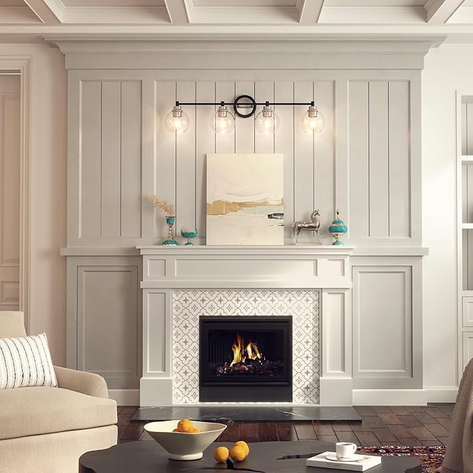 - Modern Vanity Light: Vonluce's 4-light bathroom vanity light blends clear glass shades with matte black and brushed nickel finishes, adding a timeless charm to any interior style, from chic modern to classic traditional