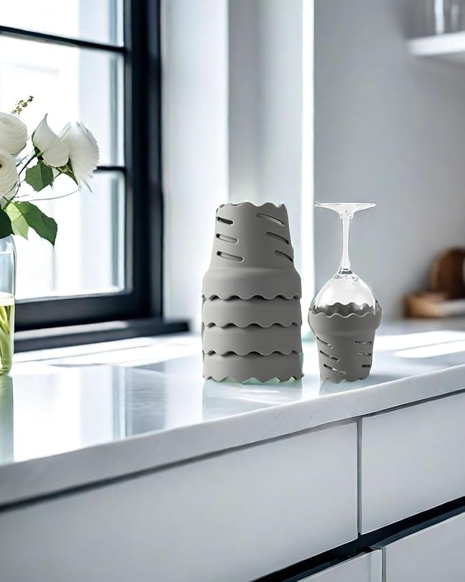 - Food-Grade Silicone Material - Crafted from high-quality thick silicone, our cups drying rack is soft and odor-free, ensuring that it won’t scratch or cause damage to the body or interior of your drinkware. Its gentle yet secure grip cradles each cup with care, protecting your glassware from harm.