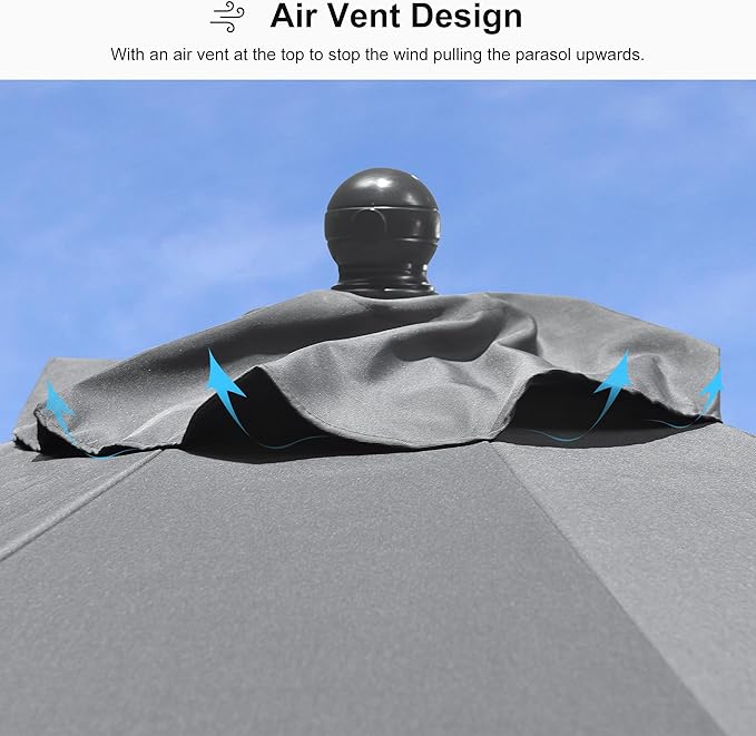- Reinforced Aluminum Frame: The umbrella frame reinforced with eight powder-coating aluminum ribs provides a robust and stable structure to ensure durability, reliable performance, and rust resistance.
