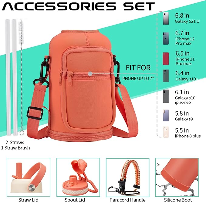 - SUPER JOYFUL COMBO: Buy a 64 oz insulated water bottle, get 9 accessories (2 x lids, 1 x survival paracord, 1 x carrying pouch, 1 x shoulder strap, 1 x protective cup mat, 2 x straws, 1 x straw brush). DIGJUPER provide a lifetime warranty and 7X24H customer service.