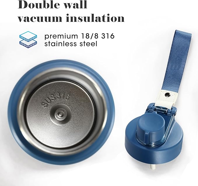 - 【Upgraded material - 316 stainless steel】316 stainless steel is further upgraded on the basis of 18/8 (304) stainless steel (controlling the proportion of impurities, adding molybdenum), corrosion prevention, acid and alkali resistance, high temperature resistance is stronger than 18/8 (304), therefore: all kinds of strong acid and alkali drinks (cola, coffee), this stainless steel water bottle can withstand. 316 stainless steel can better adapt to the environment where the temperature is too high or low, and it will not affect its corrosion resistance. Therefore: it is durable and will never leave a metallic taste or rust.