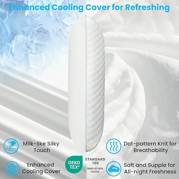 - 【Dual-sided Pillowcase & Cooling Sleep】- The orthopedic pillow has 2 pillowcase sides with different textures for comfortable and cooling sleep. An upgraded cooling fabric on one side reduces the temperature by at least 3°C during sleep and provides a ice-silky smooth feel. The other side is a dot-patterned knit fabric that is moisture-wicking and breathable to prevent waking up from overheating. Choose our neck pillow for sleeping refreshingly in all seasons.